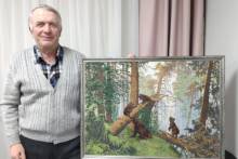 Во-вторых, состоялась долгожданная презентация работы П. В. Чунарева, которую мы ждали с момента первой встречи клуба. Картина "Утро в сосновом лесу", вышитая крестиком, не уступает по красоте оригиналу. А уж сколько труда в неё вложено!