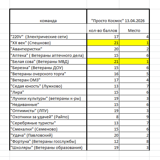 По итогам игры первое место разделили сразу две команды - «Белая сова» (МВД) и XX век (Спешково). Поздравляем победителей!